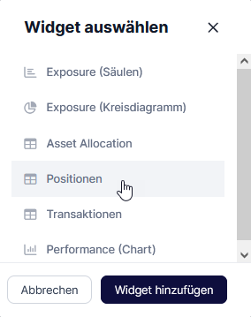 - Wählen Sie dann im erscheinenden Dialogfenster "Widget auswählen" das gewünschte Widget per Mausklick aus.