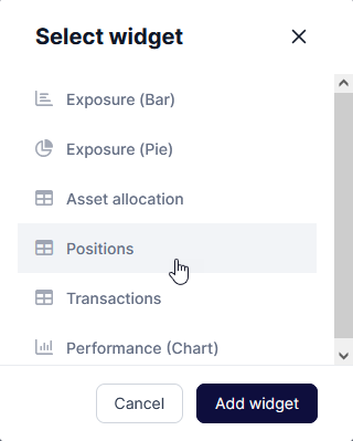 - Then select the relevant widget by clicking on it in the “Select widget” dialogue window that appears.