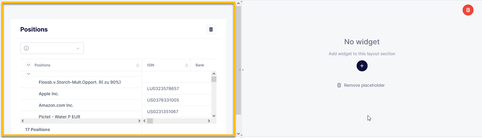 The widget is removed and a placeholder is displayed. - Now proceed as described above under Add new widget in empty placeholders.