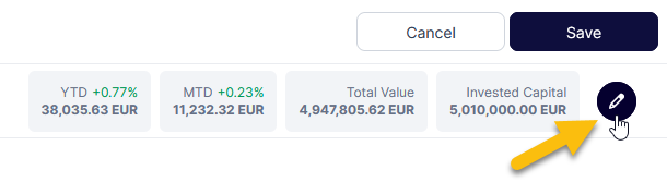 On the right side the header, you see the global portfolio values. You can configure this display individually in configuration mode. To do this, follow these steps: