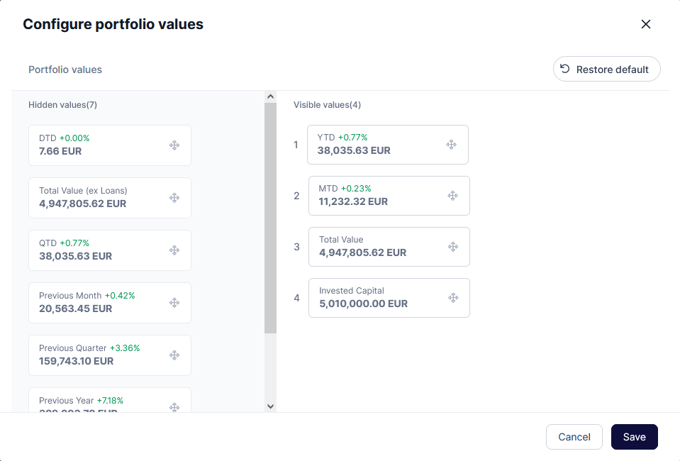 - Finally, save your settings in the "Configure portfolio values" dialogue box using the "Save" button.