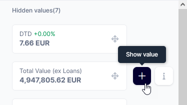 You will see the currently hidden values on the left-hand side and the currently visible values on the right-hand side. - To add one of the hidden values, point to the value and then select the "Show value" icon that appears.